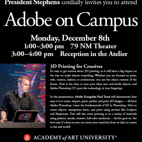 Adobe’s Paul Trani will be at The Academy of Art University this Monday, December 8th, to talk all about 3D...